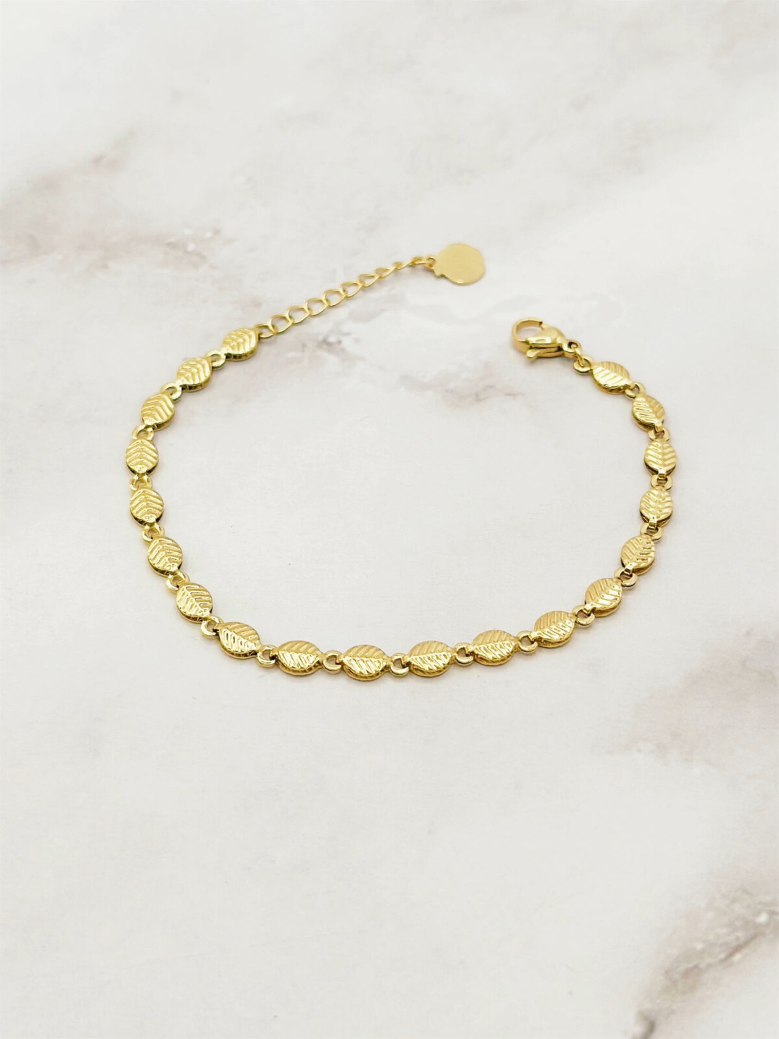 Tilføj et naturligt og tidløst touch til dit look med dette smukke Emily armbånd i forgyldt stål med blad-detaljer 🌿💛. Et elegant og feminint smykke, der fanger naturens skønhed og omsætter den til et moderne design, som passer perfekt til enhver stil.