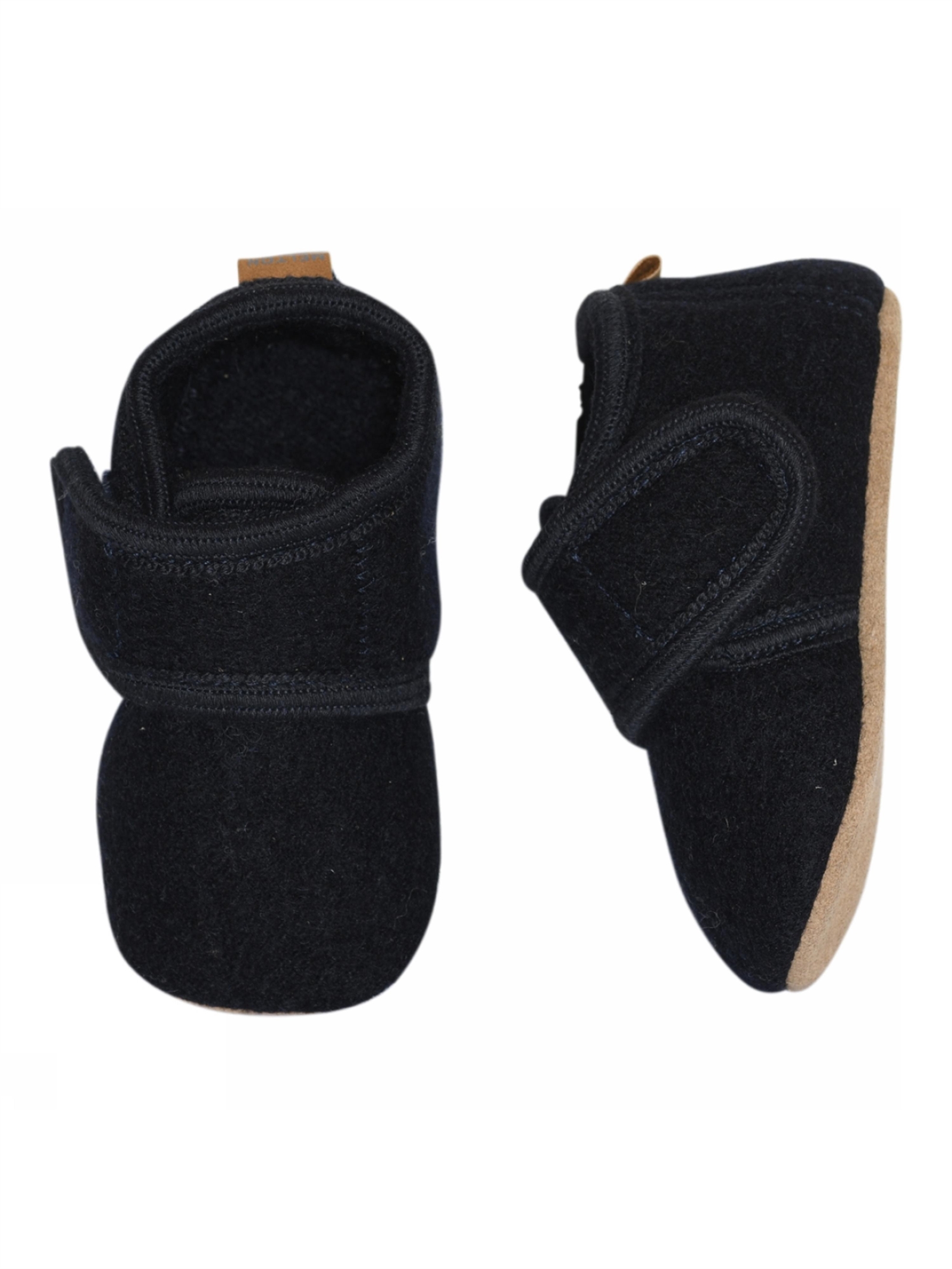 Med Melton uld sutsko i Marine får du et par funktionelle, varme og stilfulde hjemmesko, der kombinerer høj kvalitet med praktiske detaljer – perfekte til små fødder, der skal holdes trygge og komfortable hele dagen.