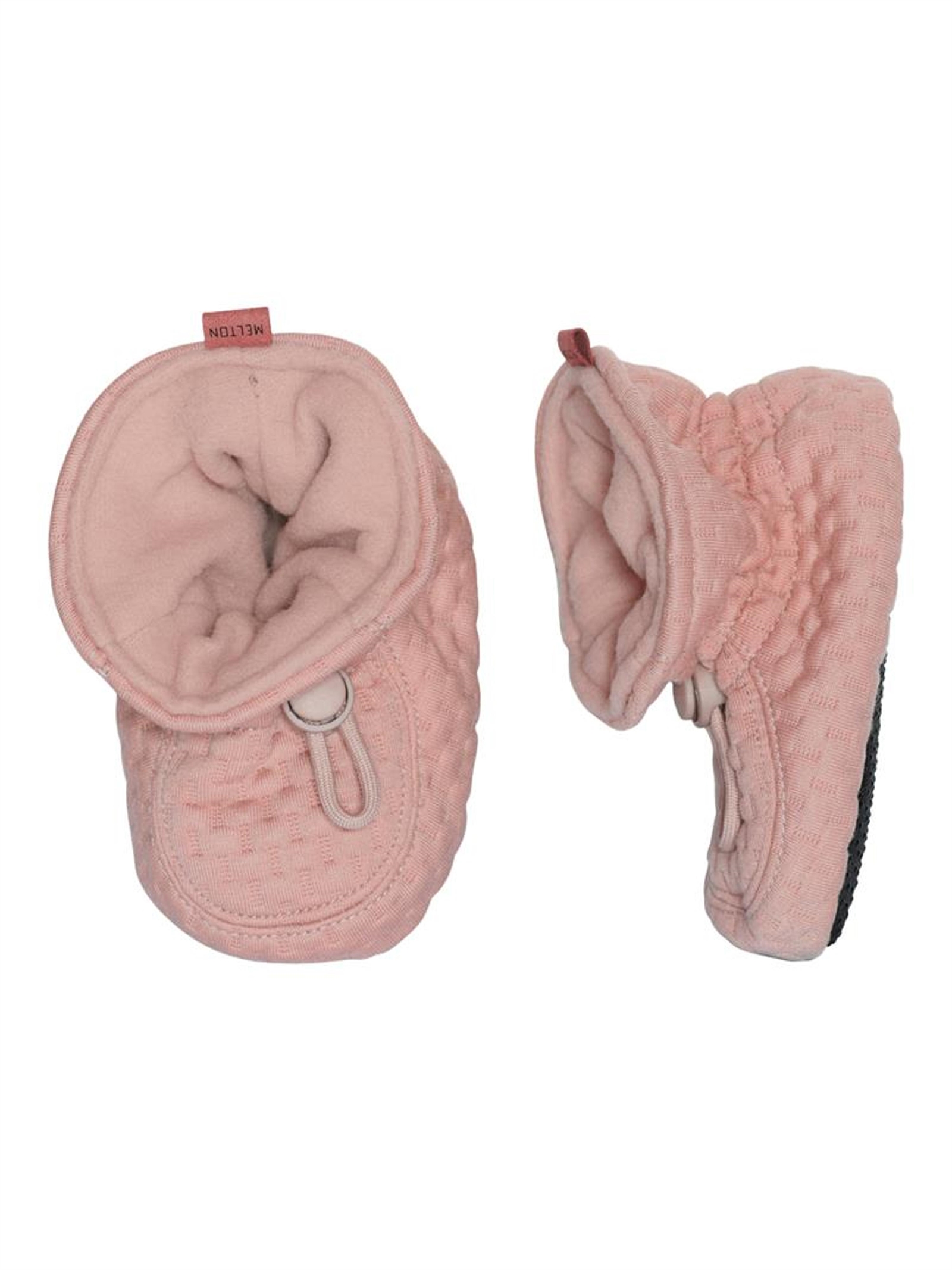 De søde Melton Structure Textile Slippers i farven Rosa 🌸🥿 er perfekte til at holde små fødder varme og komfortable i hverdagen. Med deres bløde materialer, skridsikre sål og justerbare pasform er de ideelle både til hjem, vuggestue og børnehave.