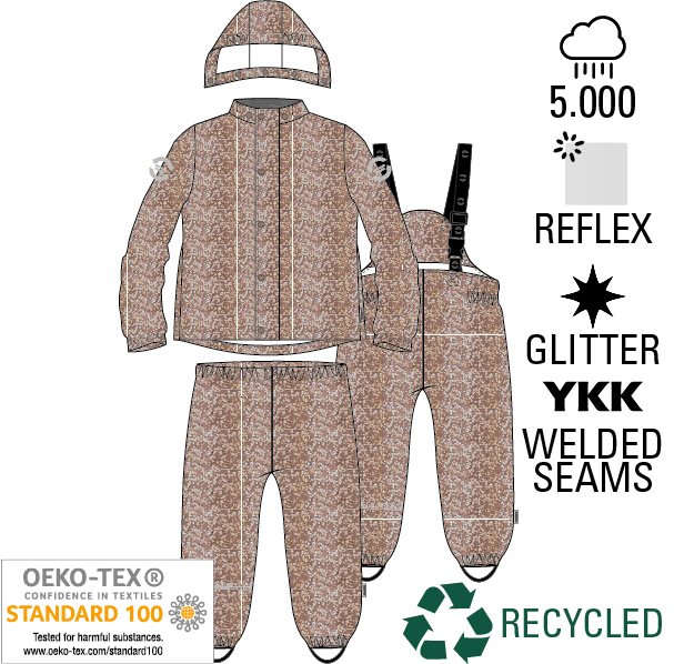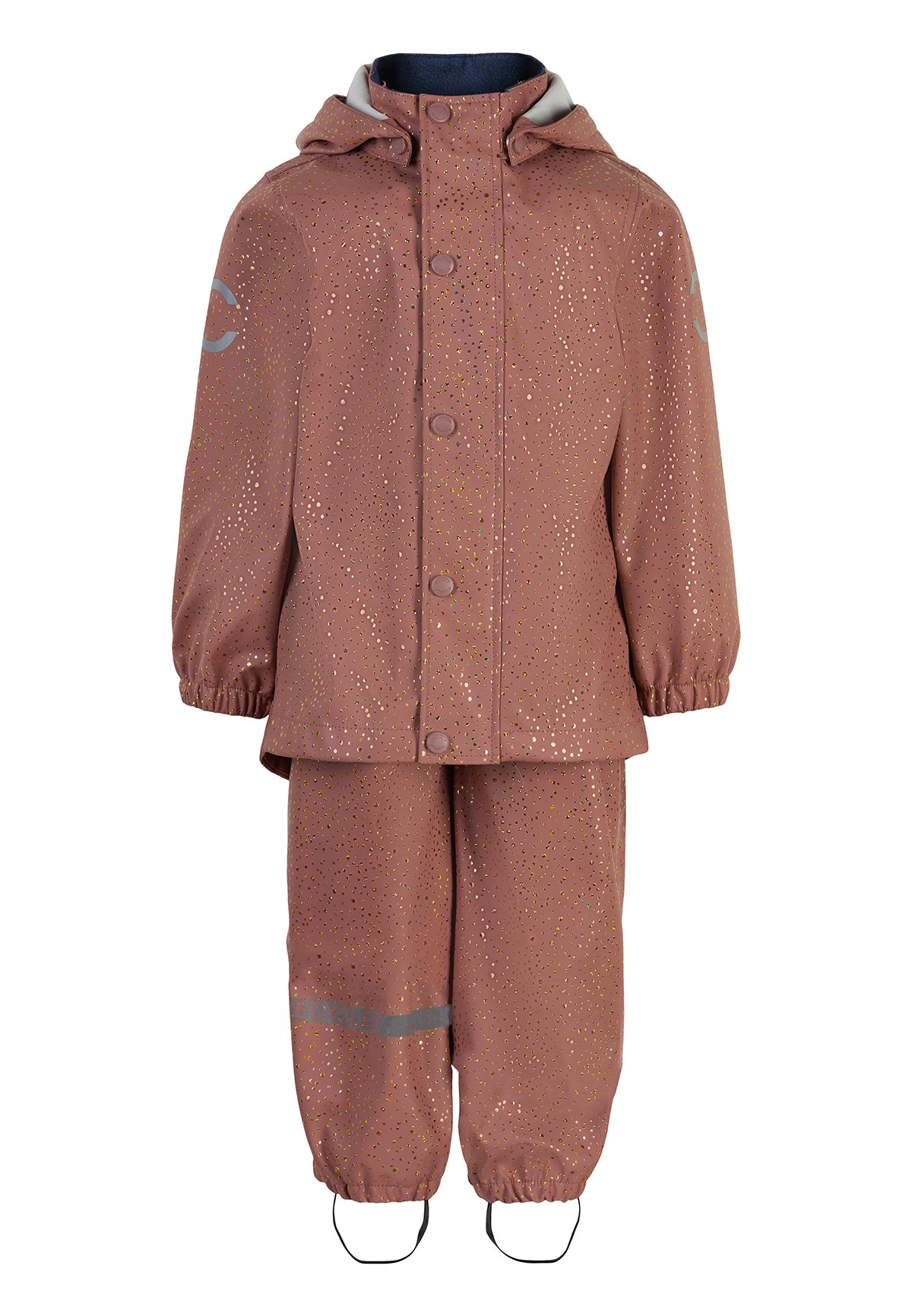 Burlwood Glitter er en helt særlig farvevariant. Den smukke rosa base er dækket af fine glimmerdetaljer, som glitrer blidt, når lyset rammer ✨💗. Det giver regntøjet et unikt og eksklusivt udtryk – perfekt til børn, der elsker et feminine twist, men stadig vil have god funktionalitet.