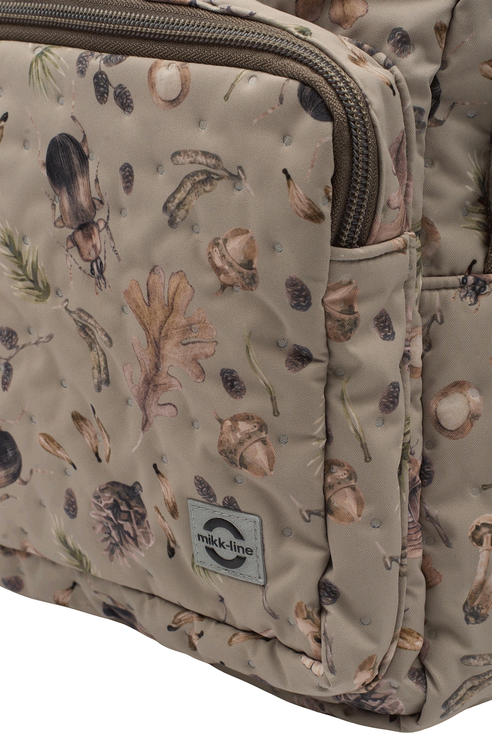 Mikk-Line turtaske i farven Cloud Gray med botanisk printQuiltet Mikk-Line rygsæk i Cloud Gray med naturprintMikk-Line turtaske Cloud Gray med reflekslogo og justerbare stropperMikk-Line turtaske i farven Seneca Rock med skovprint af blade og insekterMikk-Line turtaske Seneca Rock med reflekslogo og justerbare, polstrede skulderstropper