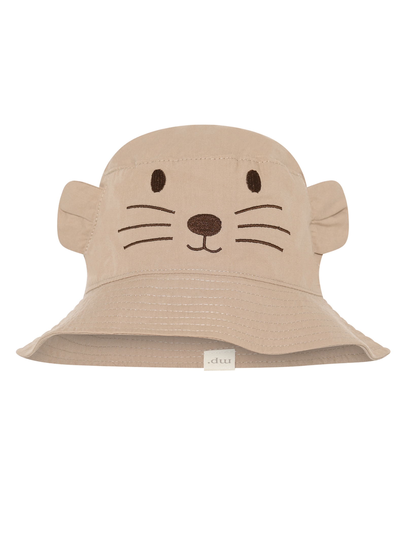 Det første man lægger mærke til ved denne bøllehat er det fine broderede ansigt på forsiden. Ansigtet forestiller et sødt lille dyr med øjne, næse, mund og knurhår broderet i mørke nuancer. De små ører på siden af hatten giver et ekstra sjovt og legende udtryk, som børn elsker. Det gør hatten både funktionel og underholdende at have på.