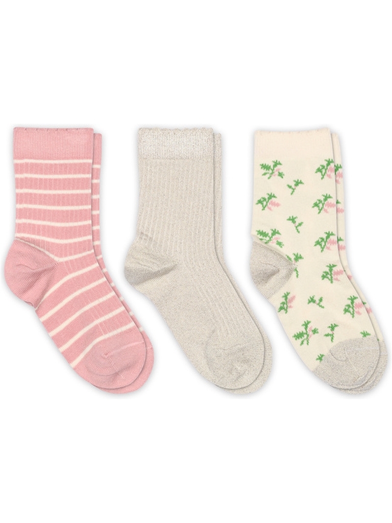 Denne fine 3-pak strømper fra mp Denmark er et perfekt valg til børn, der ønsker komfort, kvalitet og et sødt design i hverdagen. Pakken indeholder tre forskellige par strømper i smukke og harmoniske farver: et par rosa strømper med striber, et par klassiske beige ribstrømper og et par cremefarvede strømper med et fint blomsterinspireret mønster. Kombinationen af de tre designs gør pakken både praktisk og alsidig, så barnet kan variere sit look fra dag til dag. 🌸🧦